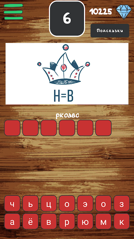 За каждый угаданный ребус в игре даются диаманты. Заработанные диамантики вам пригодятся, если не получается разгадать зашифрованное слово. За определенное количество диамантов можно: