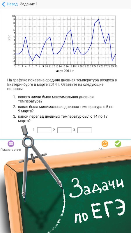 Приложение представляет собой тесты по математике на различные темы. Даже отличник наверняка найдет незнакомые труднорешаемые задачи.