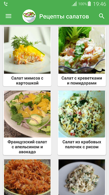 Рецепты салатов на каждый день. Работает без подключения к интернету