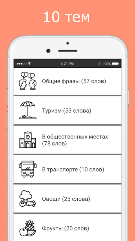 Приложение позволить Вам сделать первый шаг к изучению языка с нуля, заинтересовать вас, а дальше уже Вам решать - ограничиваться только разговорными фразами на русском языке, или идти дальше, изучая грамматику, лексику и синтаксис.