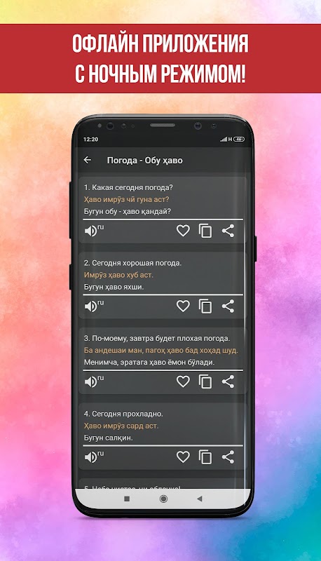 • Вы можете поделиться фразами и копировать в буфер обмена