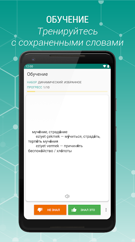 Окно описания открывается при клике на слово. Вы можете завернуть и развернуть окно описания с функцией swipe.