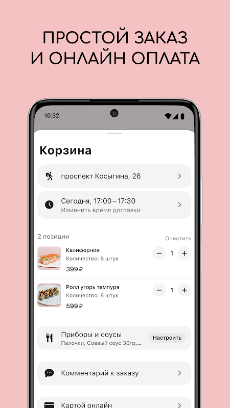 Удобное приложения для доставки из ресторана Рыбка Моя