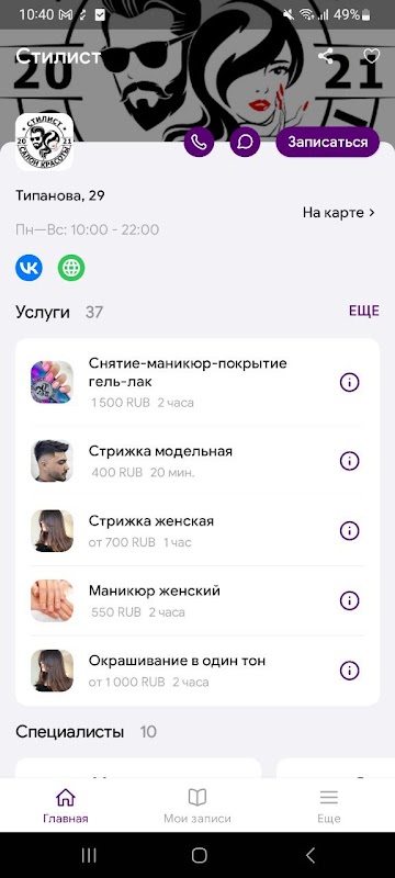 Официальное мобильное приложение салона красоты *СТИЛИСТ*
