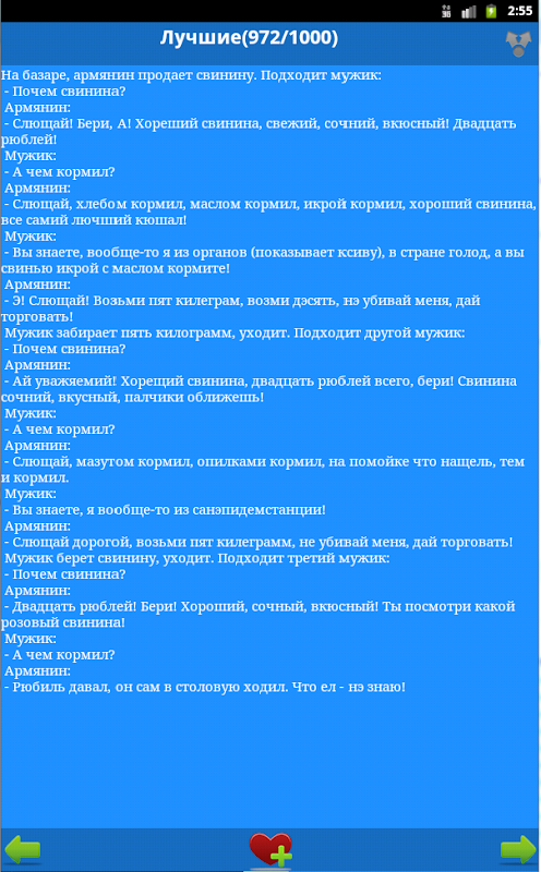 Читайте анекдоты где угодно: в поездке, в метро, по дороге на работу или учёбу, дома, на работе, в машине, дома или в компании хороших друзей! Приложении где собраны лучшие анекдоты, которых более 20000 абсолютно не требует подключения к интернету!!