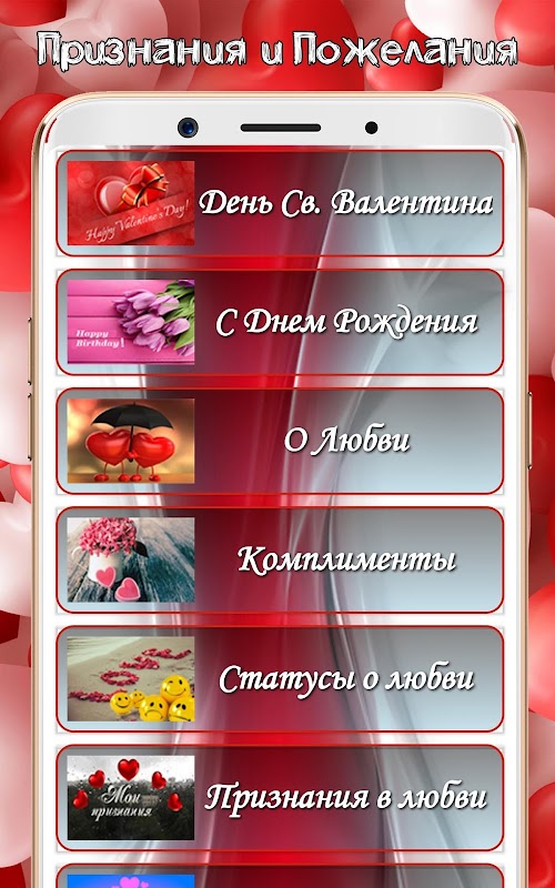 Теперь можно не ломать голову, придумывая оригинальное SMS. Данное приложение поможет признаться в любви дорогому Вам человеку, написать комплимент, рассказать о своих искренних чувствах любимым.