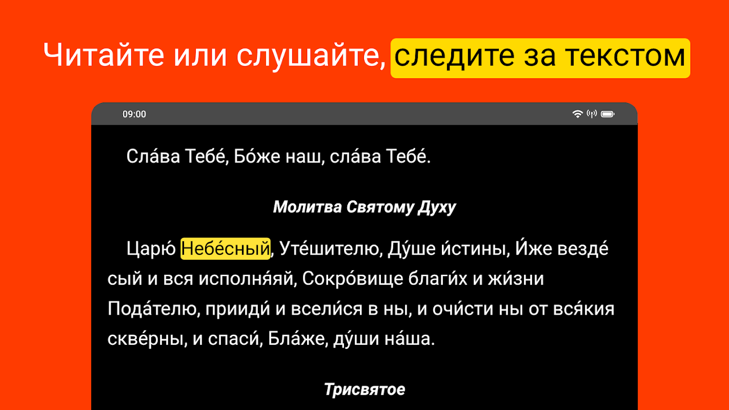 ・Уникальная подсветка слов позволяет следить за текстом во время прослушивания, помогает лучше понимать и запоминать молитвы.