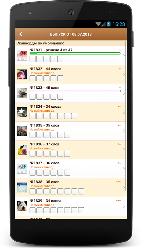 ⚙ Для загрузки новых ежедневных сканвордов необходимо соединение вашего мобильного устройства с Интернетом.