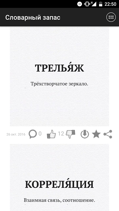 Каждое слово содержит короткую расшифровку, а так же ударение, которое поможет произносить слово правильно. Новые и интересные слова! Заимствованные из других языков слова.