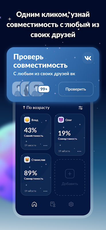 Мы разработали уникальный алгоритм, учитывающий все аспекты совместимости любви и дружбы.