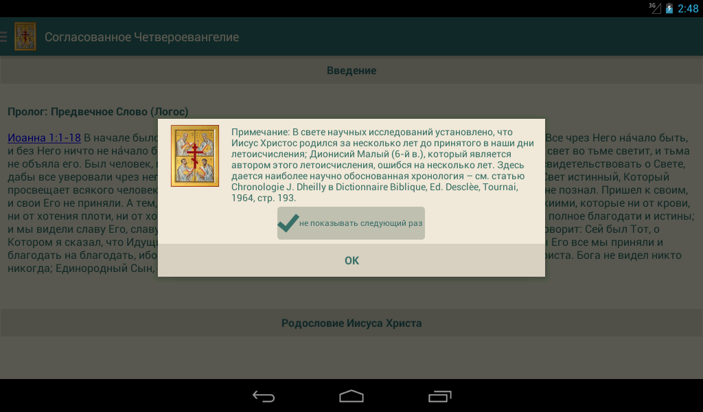 Все 4 Евангелия от апостолов-евангелистов (Матфея, Марка, Луки и Иоанна) представлены как единый хронологический текст без каких либо изменений или добавлений. В основе только синодальный перевод апостольских книг Нового Завета Господа нашего Иисуса Христа. Хронологический формат поможет более полно понять реальность происходившего почти 2000 лет назад и осмыслить глубины переживаний одних и тех же событий разными апостолами и евангелистами. Спаси всех вас Бог!