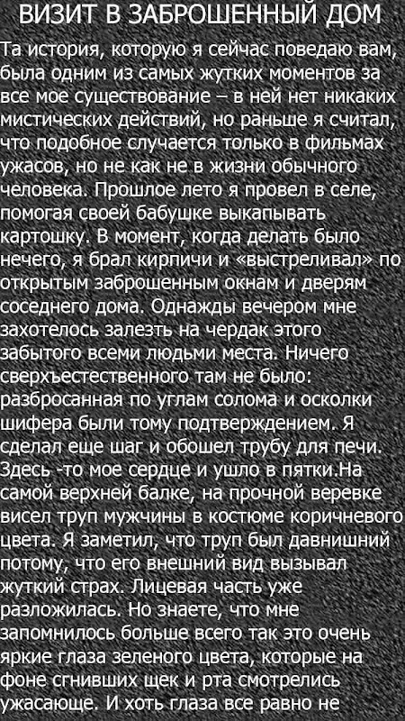 Наше приложение Страшные Истории великолепно подойдет всем, кто любит страшные истории на ночь или страшные истории без интернета.