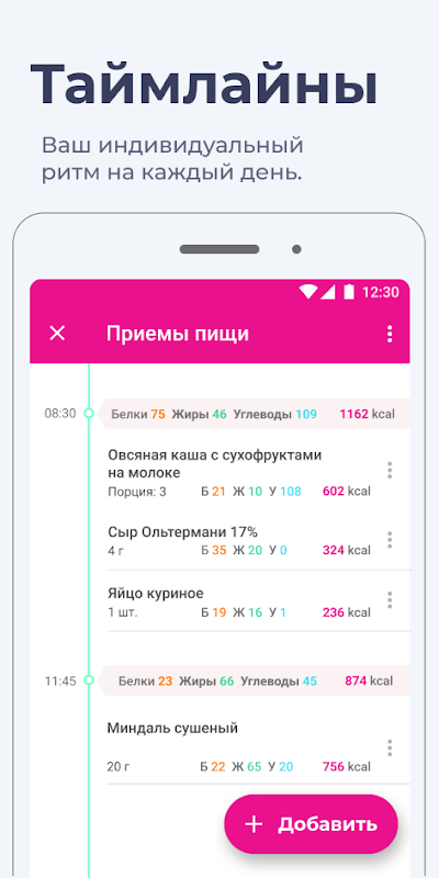 – Выбирайте продукты по калорийности и БЖУ из базы в приложении