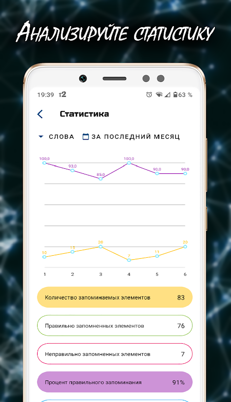 - Доступны режимы запоминания слов и чисел на время и на выносливость.