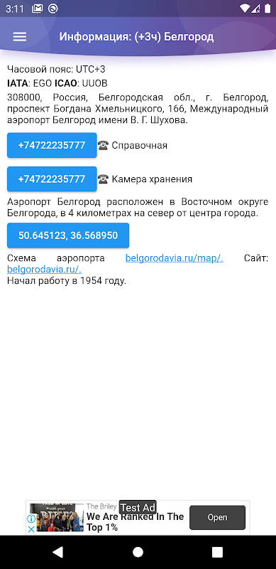 Неофициальное приложение с табло вылетов и прилетов в аэропорту Белгорода. Дополнительно расписание рейсов и прочая полезная информация.