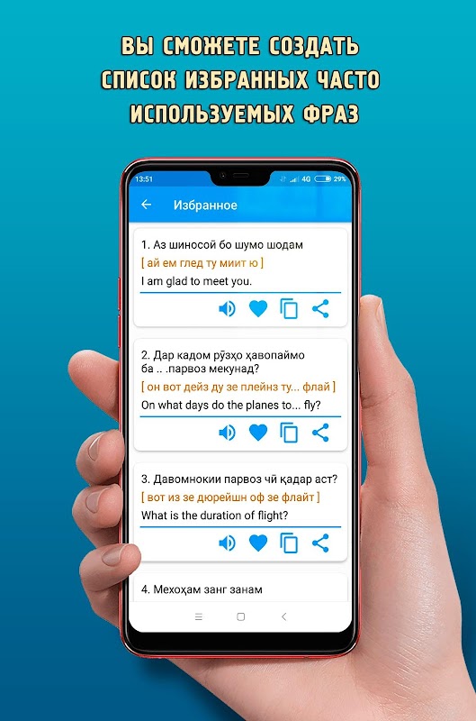 • Вы можете поделиться фразами и копировать в буфер обмена