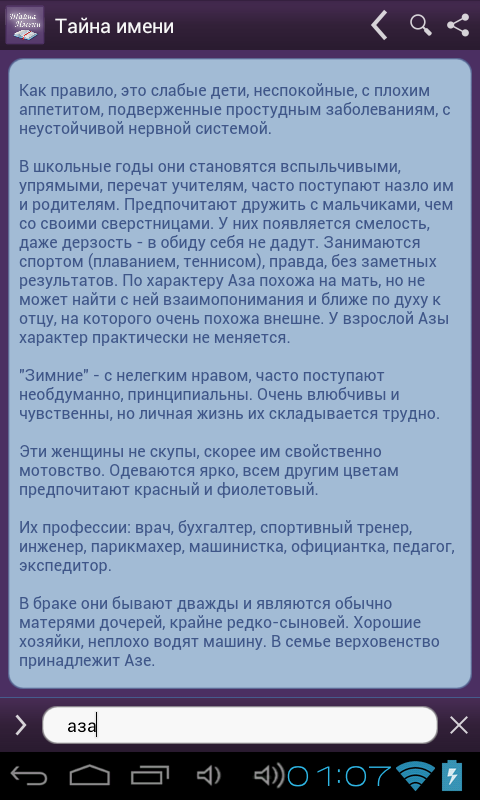 С помощью нашего приложения Вы можете узнать тайный смысл своего имени или подобрать наиболее подходящее имя для своего ребенка.