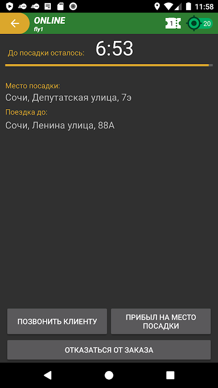 - получение заказов от диспетчерской службы;
