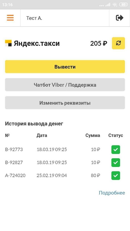 Приложение для удобного вывода средств с баланса Яндекс.Таксометра.