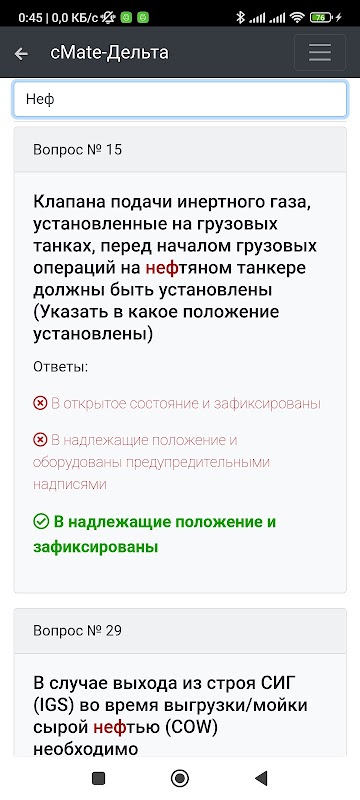 Приложение предназначено для проверки знаний членов экипажей морских судов. Специалистов по проведению грузовых операций на Нефтеналивных танкерах и химовозах. Начальная подготовка