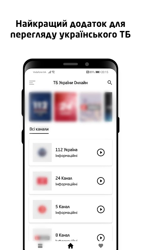 "ТВ Украины Онлайн" - лучший приложение для просмотра бесплатных украинских телеканалов.