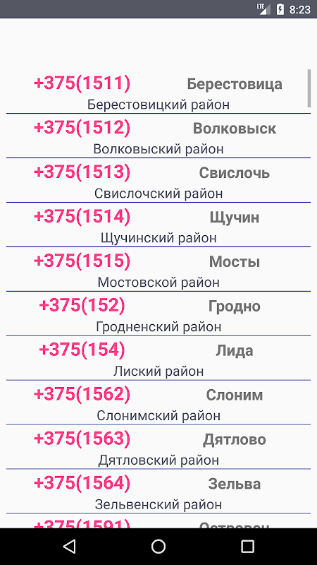 • Телефонные коды Беларуси скриншот 2
