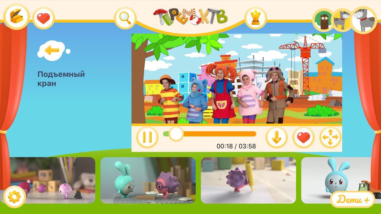 Любимые мультфильмы будут доступны вашему ребенку всегда и даже, если отключен интернет, так как в приложении есть возможность скачать. Кроме этого, в приложении можно оформить профили для нескольких детей, чтобы каждый ребенок мог составить себе свой любимые набор мультфильмов. Все мультфильмы разбиты на категории — «Учим цифры и буквы», «Учим формы и цвета», «Путешествия и приключения», «Познаем мир», «Музыка и танцы». Каталог позволяет выбрать мультфильм по настроению.