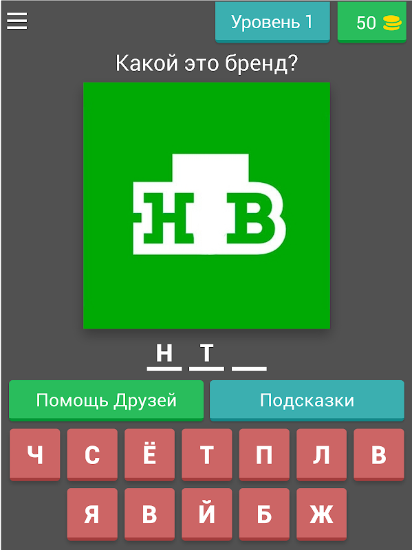 Суть игры заключается в том, чтобы угадать название бренда по логотипу, составив слово из букв, представленных на игровом поле.