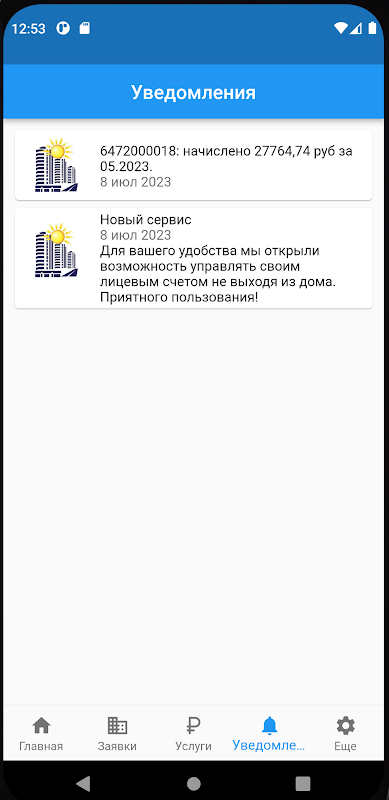 Удобный просмотр истории начислений и оплат. Ввод показаний счетчиков.