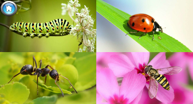 В нашем приложении ребенок узнает название Птиц и их звуки, также виды Насекомых и Водных обитателей с их увлекательными звуками.