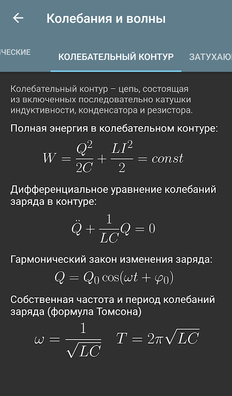 — Пояснение к каждой формуле (по нажатию): входящие в нее величины, их размерность и константы.