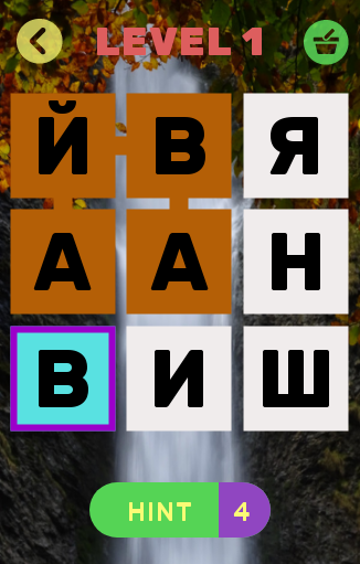 Цель игры - заполнить все клетки в сетке буквами таким образом, чтобы из них можно было составить слово.