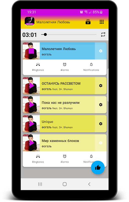 приложение "ФОГЕЛЬ песни - FOGEL Не Онлайн" содержит лучшие песни ФОГЕЛЬ :