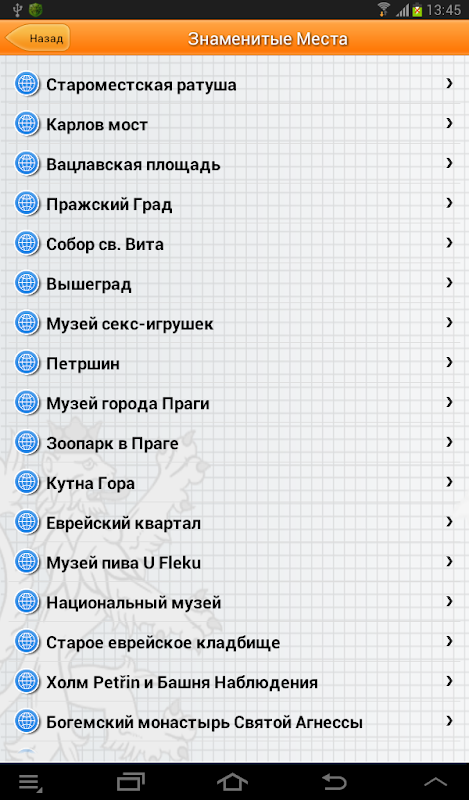 - полезная информация для туристов по лучшим ресторанам и кафе Праги, банкоматам, метро, особенностям национальной кухни, популярным курортам Чехии и много другое