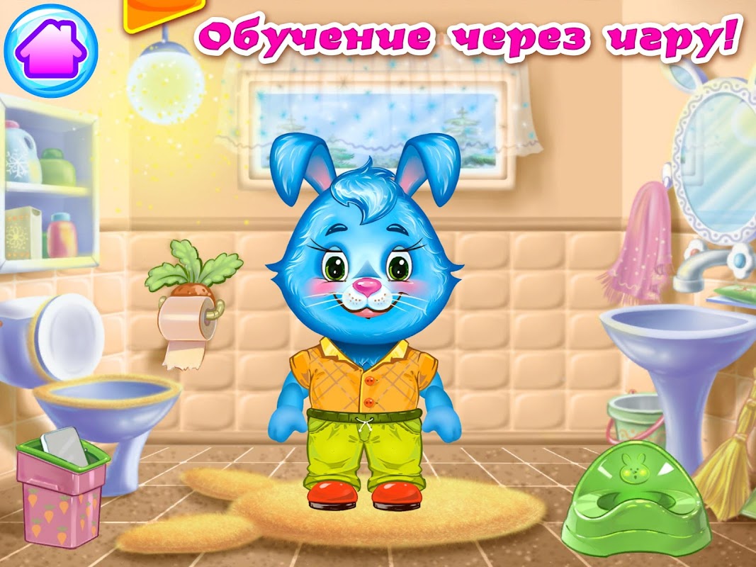 В приложении ЧИСТЮЛЕЧКИ FREE ребёнок вымоет голову симпатичной зайчишке.