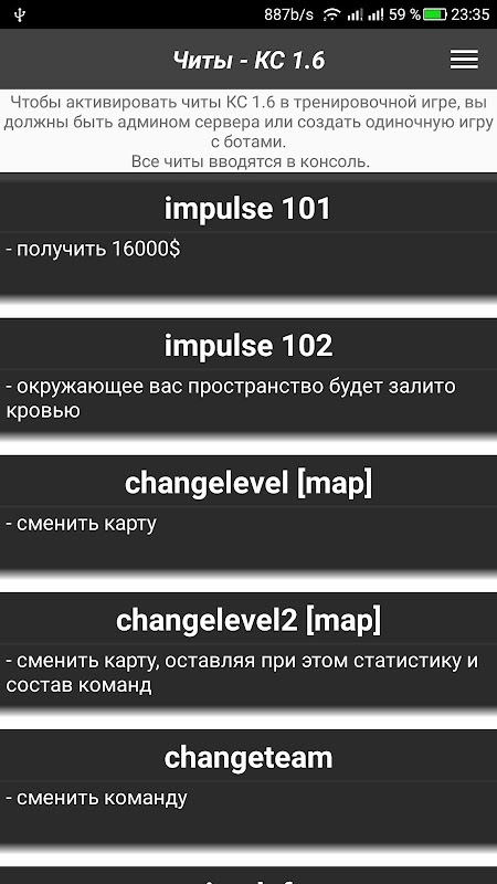 Консольные команды КС 1.6 позволяют делать в игре буквально что угодно – от организации полноценной тренировки и детальнейшей настройки своего игрового конфига и до прямого управления действиями ботов и просмотра сквозь стены, что уже практически можно считать читом. Впрочем, как вы понимаете, приложение включает в себя многое.