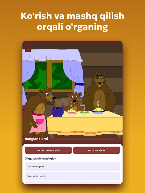 "O'qish darslari" seriyasida multfilmlar mavjud bo'lib, ularning har biri bolaning bilim darajasiga mos keladigan o'yinli interaktiv mashqlari to'plamini taklif etadi.