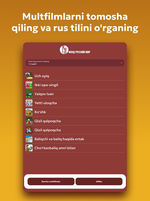 Dastur printsipi: bola har bir multfilmni qanchalik ko'p ko'rsa, u shunchalik ko'p so'z va jumlalarni ko'radi va eshitadi va qancha ko'p mashq qila olsa, u rus tilini shunchalik yaxshi biladi.