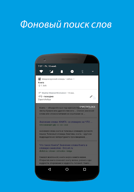 Надоело таскать с собой большие и тяжелые словари? Теперь всё необходимое будет у вас в смартфоне! Шведско-русский и русско-шведский оффлайн-словари будут всегда с вами, где бы вы ни были - на учебе, в путешествиях или занимаясь шведским в домашней обстановке. Словарь содержит в себе около 50 тысяч общеупотребительных и специализированных слов!