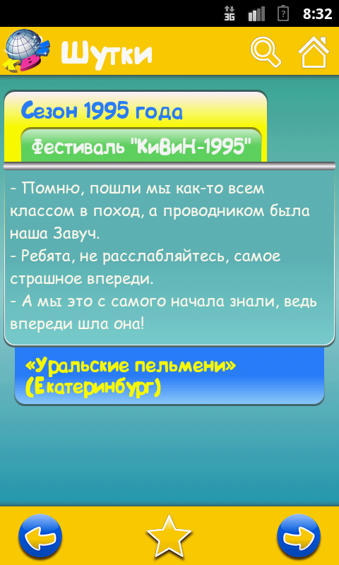 - реализован механизм закладок (автоматически сохраняются данные о просматриваемой шутке и выбранной команде; закладка доступна на главном экране приложения);