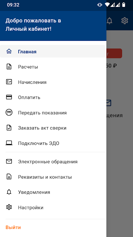 - Посмотреть расчеты, начисления, оплатить задолженность;
