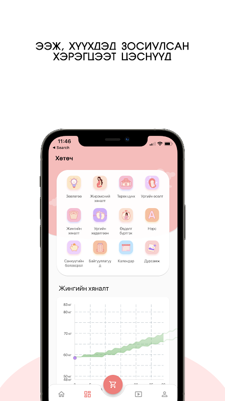 Жингийн хяналт- Жирэмсэн болсноос хойш өөрийн жингээ хянаж байх нь маш чухал учраас энэ цэс танынгын хэрэглээ байх болно