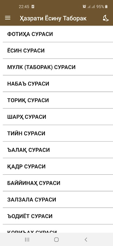 Ушбу илова орқали сиз Қуръоннинг машҳур суралари — Сура Ясин, Сура Таборак, Амма, ва бошқа кичик сураларни ёзма ва аудио шаклда ўқишингиз ва эшитишингиз мумкин.