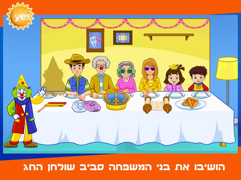 פורים- בחג זה התנסו הילדים במשחק הזיכרון ובהרכבת פאזל עם סמלי החג כגון: מסכות, רעשנים, תחפושות, אוזני המן, משלוח מנות ועוד. בנוסף, ייהנו ממשחק בישול בו יאפו אוזן המן לפורים ולבסוף יצטרכו להתאים את הושבת בני המשפחה מסביב לשולחן החג.