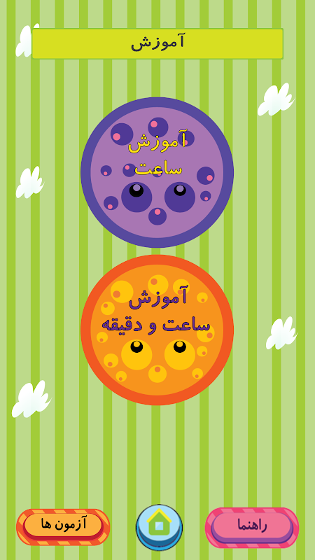 هدف از طراحی این برنامه آموزش کامل ساعت به کودکان است. علاوه بر آموزش در این برنامه 5 مرحله آزمون متنوع گذاشته شده است هر مرحله 36 سوال تصویری دارد.تمام سوالات آزمون ها را بنده طراحی کردم.پاسخ درست به هر سوال باعث کسب یک ستاره می شود یعنی باید در هرآزمون 36 ستاره کسب کنید تا مدال طلا در آن آزمون را بدست آورید و در صورت پاسخ به همه آزمون ها و کسب 180ستاره به جام طلایی دست خواهید یافت.