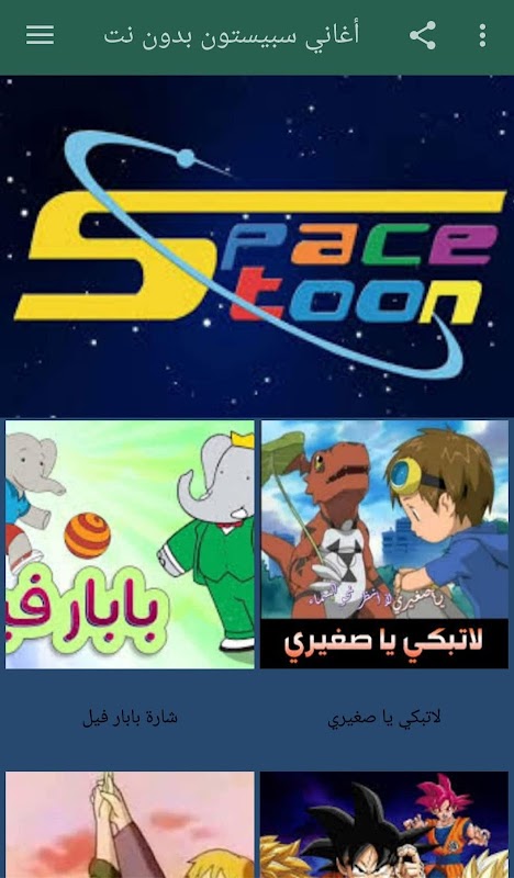 Приложение Spacetoon песни без сети на самых старых мультяшных значках