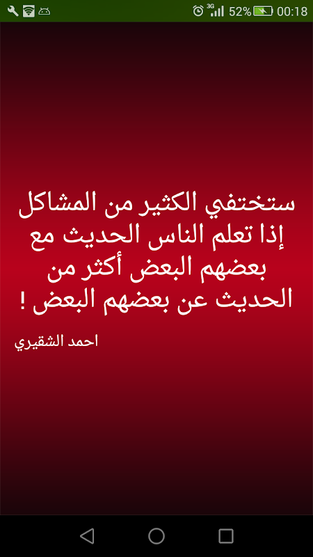 ستجد في هذا التطبيق أقوال في غاية الروعة و مفيدة جدا. أحاديث الرسول عليه الصلاة والسلام أقوال أحمد الشقيري, إبراهيم الفقي, الشعراوي, عبد الحميد بن باديس, جورج برنارد شو , عمر بن عبد الكافي و غيرهم.