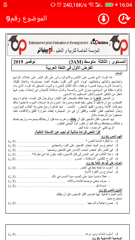 Oписание الثالثة متوسط