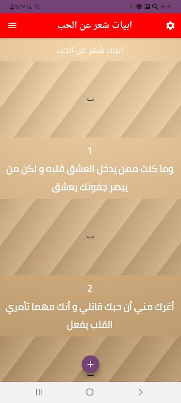 يحتوي التطبيق على أكثر من ٥٠ بيت من اجمل الأشعار عن الغرام لمختلف الشعراء
