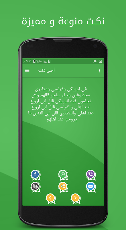- يمكنكم مشاركت جميع النكت عن طريق ضغط زر المشاركه في جميع برامج التواصل الاجتماعي المتوفره في هاتف المستخدم